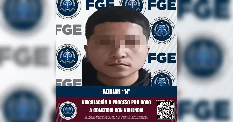 Además, se informó que, a solicitud del Representante Social, se le impuso la medida cautelar de prisión preventiva justificada, debido a que la Fiscalía Regional de Tijuana argumentó que existe un riesgo fundado de que el acusado Adrián "N" evada la acción penal.