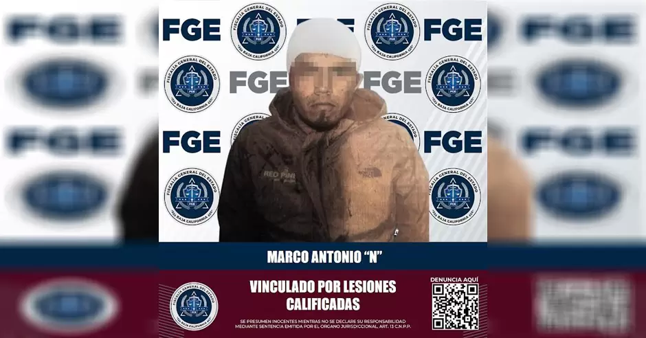 TIJUANA.- La Fiscalía Regional de Tijuana informa que Marco Antonio "N" fue vinculado a proceso penal por su presunta responsabilidad en el delito de lesiones calificadas, de acuerdo a la investigación realizada por el Ministerio Público con base en los hechos ocurridos el 21 de enero de 2024 en la colonia Leandro Valle de esta ciudad.