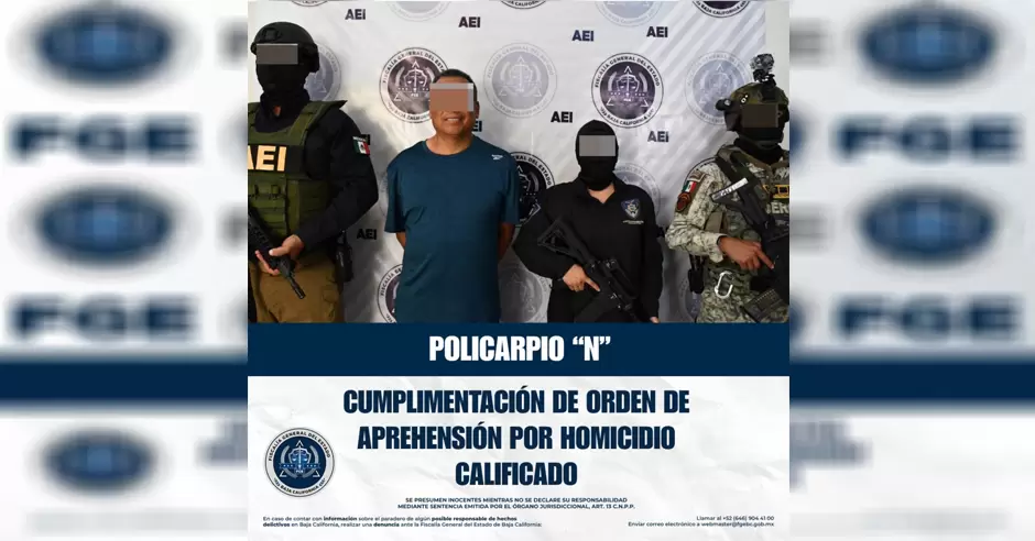 TIJUANA.- Bajo las directrices de la Fiscal General del Estado, Dra. Ma. Elena Andrade Ramírez, de colaborar de manera interinstitucional, la Unidad Especializada en Delitos Contra la Vida logró cumplimentar la orden de aprehensión en contra de Policarpio "N", originario de Hidalgo, quien contaba con un mandamiento judicial vigente en Ciudad de México por el delito de homicidio calificado.