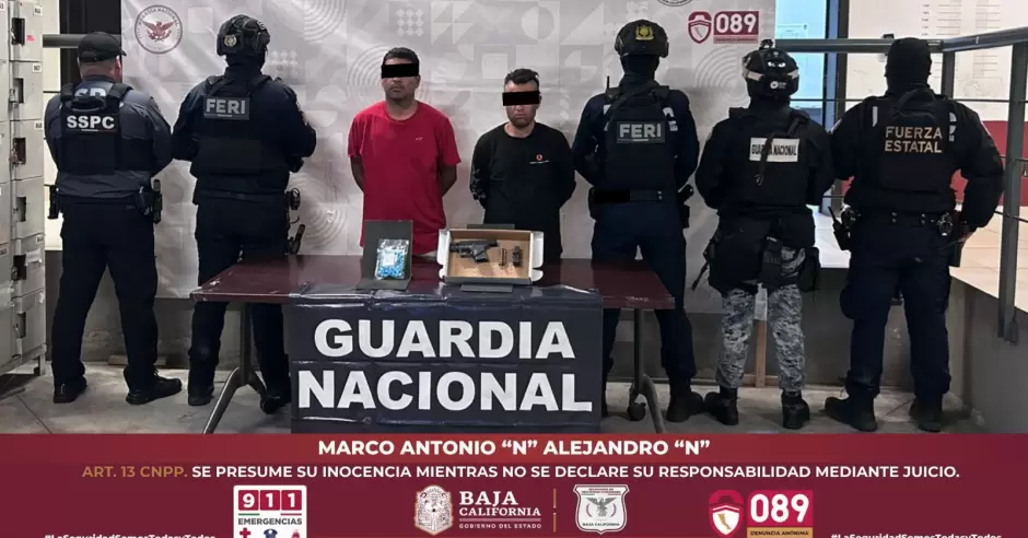 Los detenidos, identificados como Alejandro "N", de 34 años, originario de Toluca, Estado de México, y Marco Antonio "N", de 39 años, originario de Tepic, Nayarit, manifestaron residir en Tijuana y presuntamente estar vinculados a un grupo delictivo con presencia en la región.