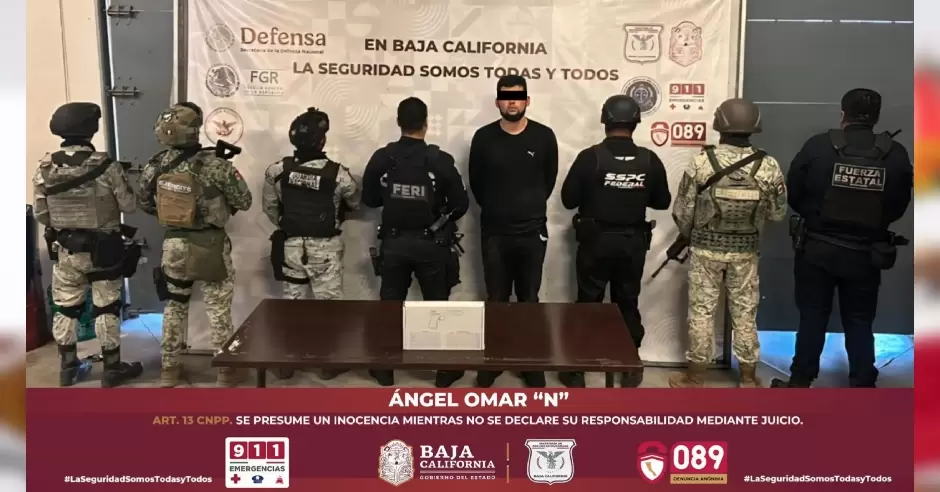 Tras seguir su trayectoria, el sujeto fue localizado en una residencia cercana, donde se procedió a su detención. Durante la intervención, a Ángel Omar "N", de 21 años y originario de Tijuana, se le encontró un arma de fuego fajada en la cintura, con un cargador de metal abastecido con siete cartuchos útiles de calibre .40 mm.