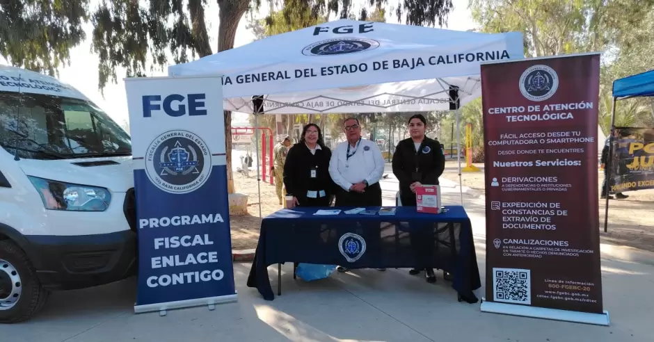 TIJUANA.- La Fiscalía General del Estado, bajo las directrices de su titular, la Dra. Ma. Elena Andrade Ramírez, continúa impulsando acciones que fortalezcan la cercanía entre la institución y la ciudadanía, así como el acceso a la justicia. A través del programa "Fiscal Enlace Contigo" y el Centro de Atención Tecnológica, personal de la Fiscalía participa activamente en las jornadas comunitarias que se realizan en coordinación con los tres órdenes de gobierno en diversas colonias del estado.