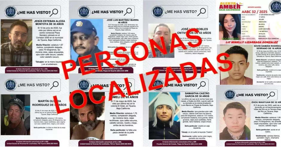 Las personas localizadas en diferentes acciones son: Jesús Esteban Alicea Montoya de 30 años, José Luis Martínez Ibarra de 46 años, José Luis Robles Ontiveros de 43 años, Kevin Damián Rodríguez Serrano de 16 años, Liz Minelly Lizárraga González de 17 años (Alerta Amber), Martín Olvera Rodríguez de 66 años, Salvador Aragón Lomelí de 65 años, Samantha Castro García de 30 años y Zhou Wanyuan de 32 años de edad.