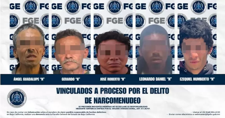 TIJUANA.- La Fiscalía General del Estado de Baja California, a través de la Fiscalía Especializada en Narcomenudeo, obtuvo la vinculación a proceso de cinco personas por su presunta responsabilidad en delitos contra la salud, en la modalidad de narcomenudeo, en distintos casos.