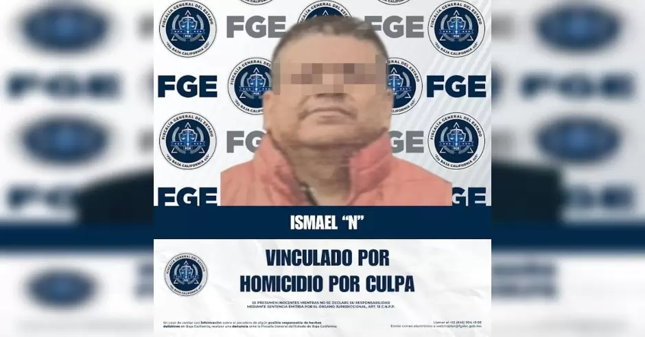 TIJUANA.- La Fiscalía Regional de Tijuana, a través de las labores realizadas por la Unidad de Investigación con Detenido, logró la vinculación a proceso de Ismael "N" por su presunta responsabilidad en el delito de homicidio por culpa, derivado de hechos ocurridos en la colonia Las Huertas Tercera Sección, en esta ciudad.