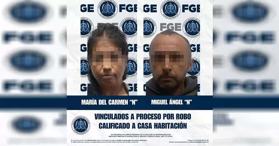 TIJUANA.- La Fiscalía Regional de Tijuana, a través de la Unidad de Investigación con Detenido, obtuvo dos vinculaciones a proceso en contra de un par de individuos señalados como probables participantes en hechos distintos relacionados con el delito de robo calificado a casa habitación.