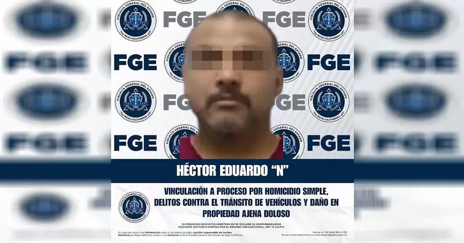 TIJUANA.- La Fiscalía Regional de Tijuana, a través de la Unidad de Investigación con Detenido, obtuvo la vinculación a proceso de Héctor Eduardo "N", por su presunta responsabilidad en los delitos de homicidio simple, delitos contra el tránsito de vehículos y daño en propiedad ajena doloso.