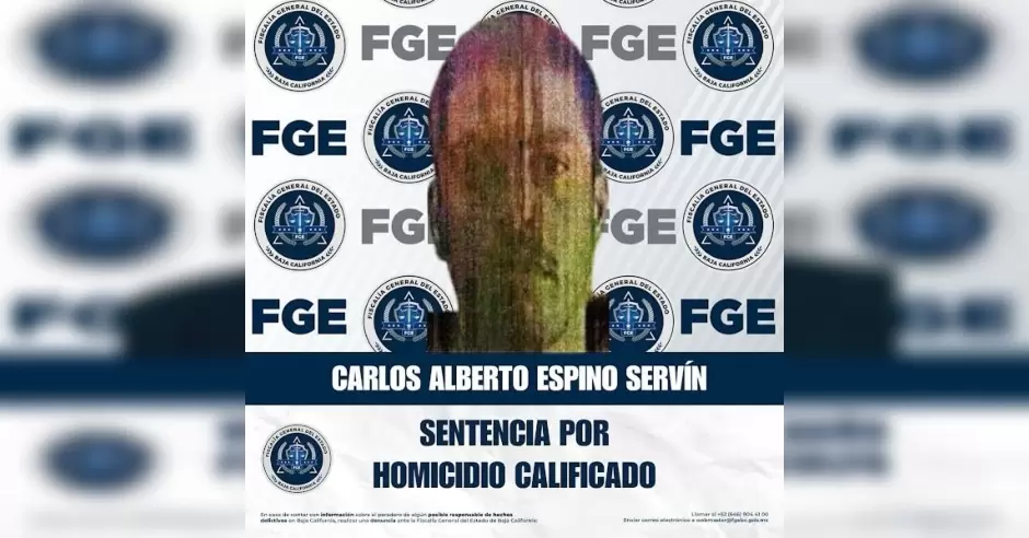 TIJUANA.- La Fiscalía Regional de Tijuana, a través de la Coordinación de Averiguaciones Previas y Control de Procesos, obtuvo una sentencia condenatoria de 22 años de prisión en contra de Carlos Alberto Espino Servín, alias "El Mono", por el delito de homicidio calificado.