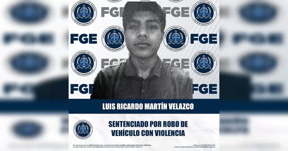 TIJUANA.- La Fiscalía Regional de Tijuana obtuvo una sentencia condenatoria en contra de Luis Ricardo Martín Velazco, por su responsabilidad en el delito de robo de vehículo con violencia, a través de un procedimiento abreviado.