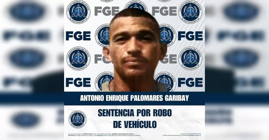 TIJUANA.- La Fiscalía Regional de Tijuana, a través de la Unidad de Investigación de Robo de Vehículos, logró que se dictara sentencia condenatoria en contra de Antonio Enrique Palomares Garibay, por su responsabilidad en el delito de robo equiparado de vehículo de motor en la modalidad de poseer.