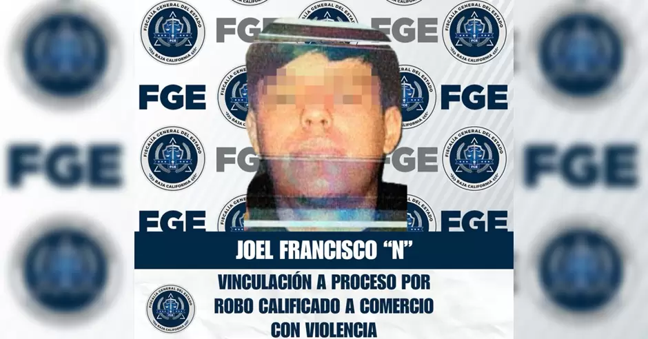 TIJUANA.- La Fiscalía Regional de Tijuana obtuvo la vinculación a proceso de Joel Francisco "N", por su probable participación en el delito de robo calificado a comercio abierto al público ejecutado con violencia.
