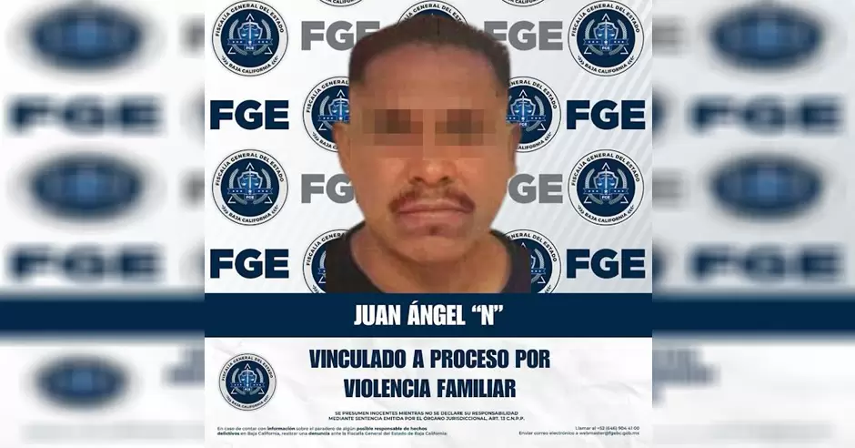TECATE.- La Fiscalía Regional de Tecate, derivado de los datos de prueba presentados por el Ministerio Público, ha logrado la vinculación a proceso penal de Juan Ángel "N", acusado por el delito de violencia familiar.
