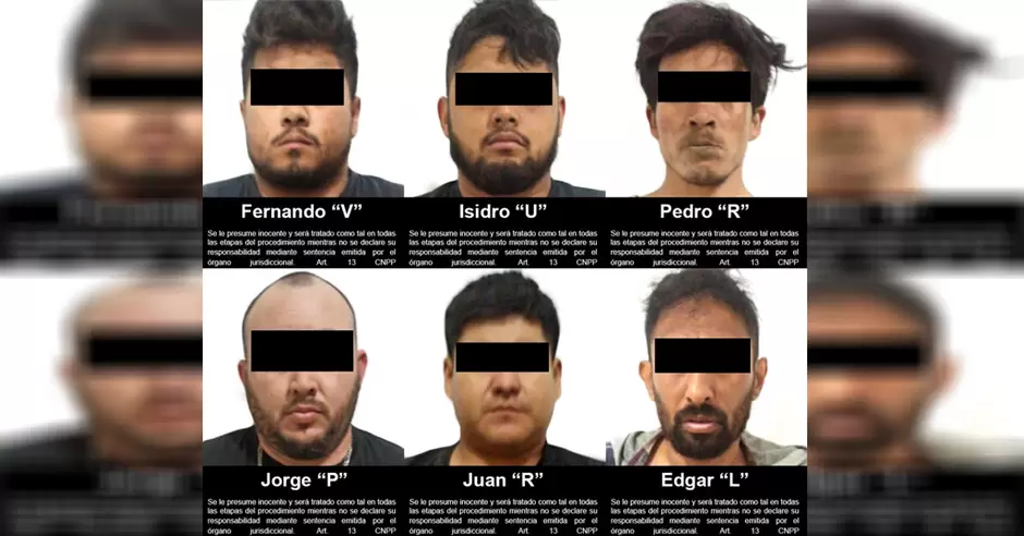 Por lo anterior, fueron detenidos Pedro "R", Jorge "P", Juan "R", Edgar "L", Fernando "V" e Isidro "U", asegurándoles seis armas de fuego largas y una corta, dos mil 959 cartuchos, cuatro granadas, 69 cargadores, siete placas balísticas, equipo táctico, tres vehículos y envoltorios con marihuana.