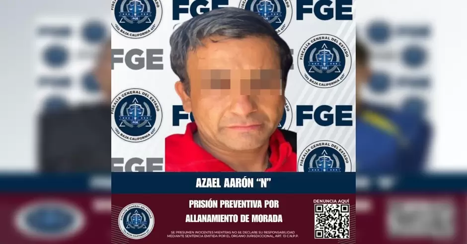 TIJUANA.- La Unidad de Investigación UTMC Zona Centro, adscrita a la Fiscalía Regional de Tijuana, dio a conocer que un hombre permanecerá en prisión preventiva justificada por su presunta responsabilidad en el delito de allanamiento de morada, luego de que fuera capturado con orden de aprehensión el 12 de mayo de 2025.
