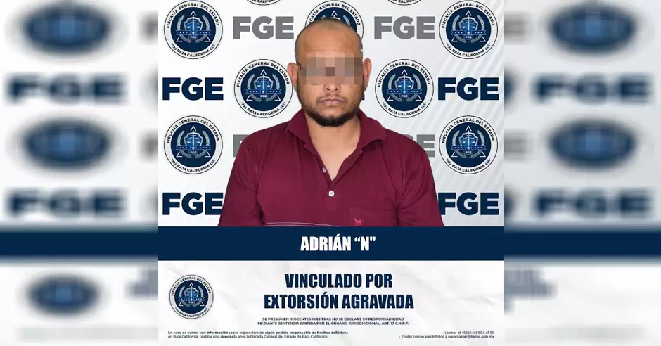MEXICALI.- Como parte de las acciones estratégicas de la Campaña Nacional contra la Extorsión, la Fiscalía General del Estado (FGE) logró la vinculación a proceso de Adrián "N", a quien se le atribuye el delito de extorsión agravada contra un comercio en Mexicali.