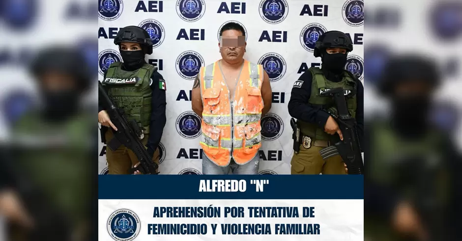 TIJUANA.- La Fiscalía General del Estado, a través de la Unidad de Aprehensiones de la Agencia Estatal de Investigación, logró cumplimentar un mandato judicial en contra de Alfredo "N", por su probable responsabilidad en los delitos de feminicidio en grado de tentativa y violencia familiar en su vertiente de violencia física.