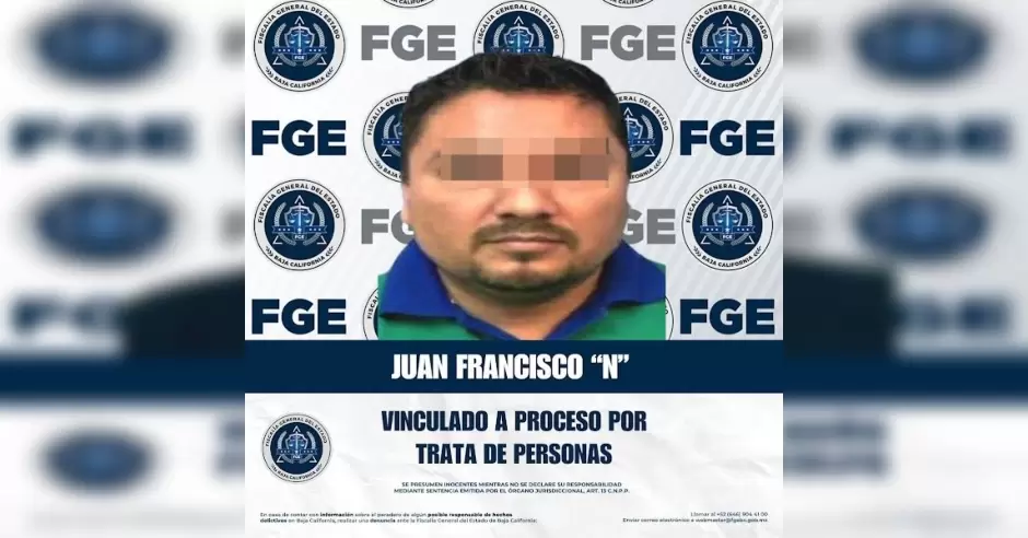 TIJUANA.- La Fiscalía General del Estado obtuvo la vinculación a proceso de Juan Francisco "N" por el delito de trata de personas, en su modalidad de explotación sexual agravada, derivado de diversas investigaciones realizadas por la Unidad de Investigación Especializada en Combate a la Trata de Personas, adscrita a la Fiscalía Especializada en Delitos Contra Mujeres por Razón de Género.