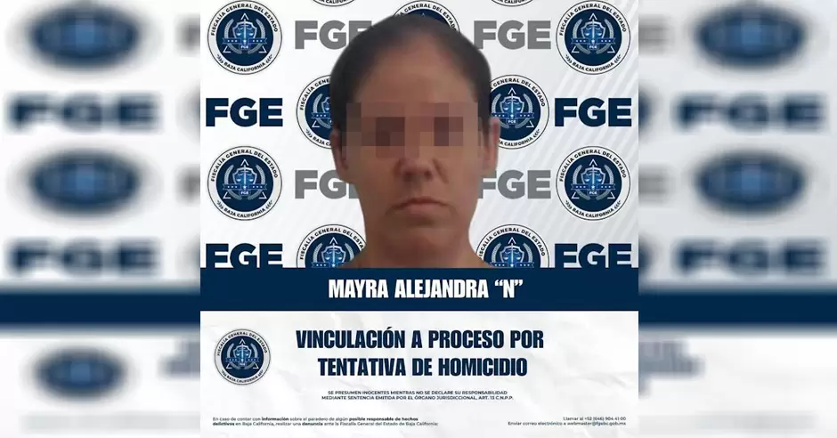 TIJUANA.- La Fiscalía General del Estado de Baja California, a través de la Fiscalía Especializada en Delitos Contra la Vida, informa que se logró la vinculación a proceso en contra de Mayra Alejandra "N", por su probable responsabilidad en el delito de homicidio calificado en grado de tentativa, derivado de hechos ocurridos en la ciudad de Tijuana.