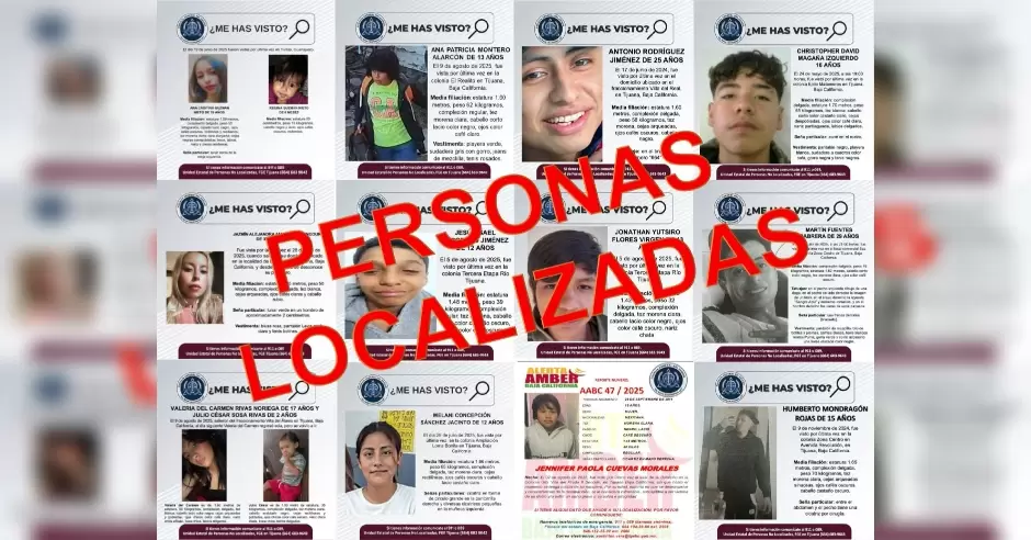 Las personas localizadas son: Ana Cristina Guzmán Nieto, de 19 años; Regina Guzmán Nieto, de 8 meses; Ana Patricia Montero Alarcón, de 13 años; Antonio Rodríguez Jiménez, de 25 años; Christopher David Magaña Izquierdo, de 16 años; Jazmín Alejandra Amador Betancourt, de 32 años; Jesús Gael Escobedo Jiménez, de 12 años; Jonathan Yutsiro Flores Virgen, de 13 años; Martín Fuentes Cabrera, de 29 años; Valeria del Carmen Rivas Noriega, de 17 años; Julio César Sosa Rivas, de 2 años; Melani Concepción Sánchez Jacinto, de 12 años; Jennifer Paola Cuevas Morales, de 13 años; y Humberto Mondragón Rojas, de 15 años. Algunas de estas personas ya han sido reunidas con sus familiares, mientras que otras permanecen bajo resguardo en instituciones gubernamentales para garantizar su seguridad y bienestar.