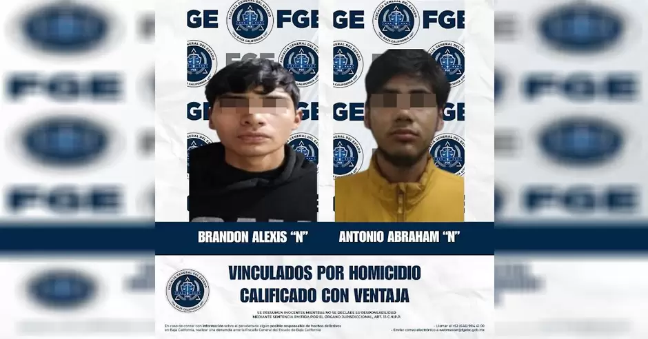 TIJUANA.- La Fiscalía Especializada en Delitos Contra la Vida obtuvo la vinculación a proceso, así como la medida cautelar de prisión preventiva, en contra de Brandon Alexis "N" y Antonio Abraham "N", por su presunta participación en el delito de homicidio calificado con ventaja.
