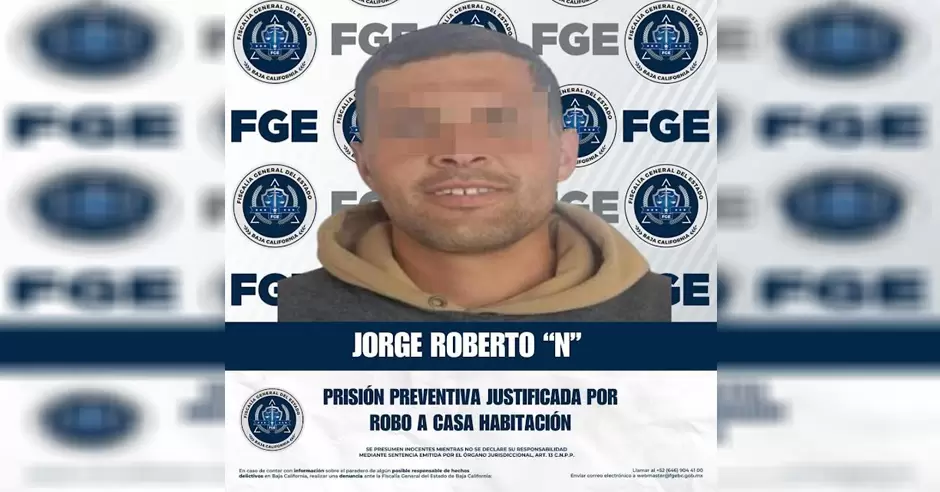 TECATE.- La Fiscalía Regional de Tecate, a través de la Unidad de Delitos Contra Robos, informa que se reaperturó el proceso penal en contra de Jorge Roberto "N", alias "El Güero", por su probable responsabilidad en el delito de robo calificado en casa habitación. Como resultado de las diligencias judiciales, se impuso la medida cautelar de prisión preventiva justificada.