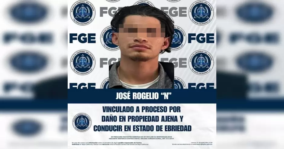TECATE.- La Fiscalía Regional de Tecate, a través de las labores realizadas por la Unidad de Investigación de Delitos con Detenido, informa que se obtuvo la vinculación a proceso de José Rogelio "N" por los delitos de daño en propiedad ajena culposo y manejar vehículo de motor en estado de ebriedad, derivados de hechos ocurridos en esta ciudad.