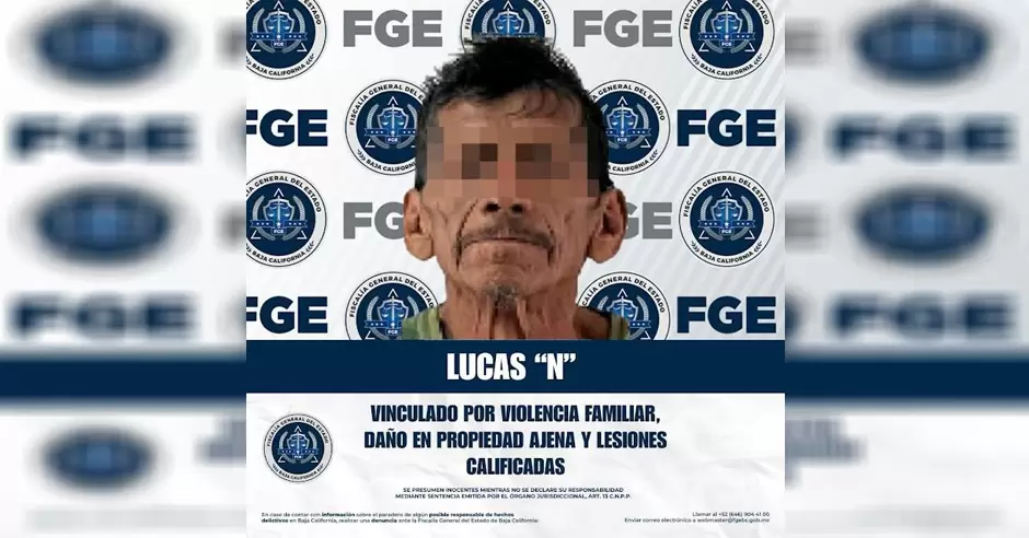 TECATE.- La Fiscalía Regional de Tecate, a través de la Unidad de Investigación de Delitos con Detenido, obtuvo la vinculación a proceso y la medida cautelar de prisión preventiva justificada en contra de Lucas "N", por su presunta responsabilidad en los delitos de violencia familiar, daño en propiedad ajena intencional y lesiones calificadas con ventaja, en agravio de tres víctimas, dos mujeres y un hombre.