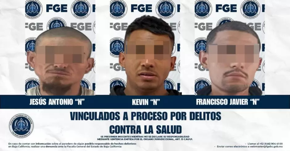 TECATE.- La Fiscalía Regional de Tecate, a través de la Unidad de Investigación con Detenido, logró la vinculación a proceso de tres masculinos por su probable responsabilidad en delitos contra la salud en su modalidad de narcomenudeo, específicamente por posesión de metanfetamina.