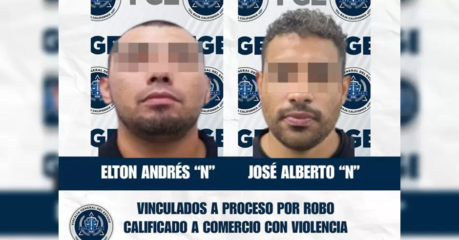 TIJUANA.- La Fiscalía Regional de Tijuana, a través de la Unidad de Investigación de Robos Zona Centro, obtuvo la vinculación a proceso de dos personas señaladas como probables responsables del delito de robo calificado a establecimientos comerciales abiertos al público, en casos distintos.