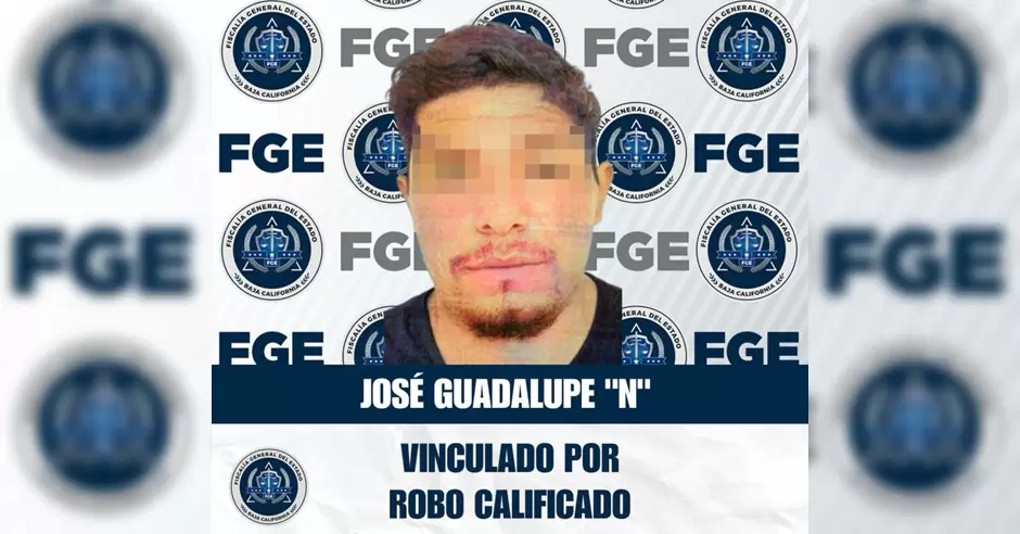 TIJUANA.- La Fiscalía Regional de Tijuana informa que, derivado de las labores de investigación realizadas por el personal ministerial, se obtuvo la vinculación a proceso y la imposición de la medida cautelar de prisión preventiva justificada en contra de José Guadalupe "N", por su probable responsabilidad en el delito de robo calificado a comercio abierto al público en esta ciudad.