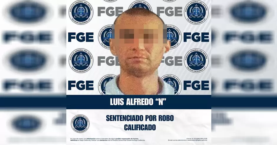 TIJUANA.- La Fiscalía Regional de Tijuana, a través de la Unidad de Investigación de Robos La Mesa, informa que logró obtener sentencia condenatoria en contra de Luis Alfredo "N", por su responsabilidad en el delito de robo calificado. Lo anterior es resultado del trabajo de investigación y la integración de datos de prueba presentados por el Ministerio Público, los cuales permitieron acreditar la participación del acusado en el hecho delictivo.