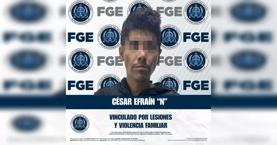 TIJUANA.- La Fiscalía Regional de Tijuana, a través de su Unidad de Investigación con Detenido, logró obtener la vinculación a proceso de César Efraín "N" por su presunta responsabilidad en los delitos de lesiones y violencia familiar, tras un incidente ocurrido el pasado 7 de octubre de 2025. Durante este evento, César Efraín, aproximadamente a las 17:30 horas, arribó al domicilio ubicado en el Fraccionamiento Valle de Las Palmas, en esta ciudad, donde reside su madre. Tras ingresar sin permiso y exigirle comida, al recibir una negativa, comenzó a agredirla verbalmente. Ante el intento de su madre por calmar la situación, el imputado se abalanzó físicamente sobre ella, causando una lesión que requirió atención médica y cuya sanación es estimada en menos de 15 días.