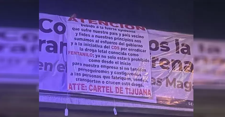 TIJUANA.- El Secretario General del Gobierno del Estado de Baja California, Catalino Zavala Márquez, confirmó la mañana de este viernes que fueron colocadas 17 mantas, en distintos lugares de los diferentes municipios, de grupos delictivos que advierten que tomarán represalias contras aquellos que fabriquen, vendan, transporten o crucen la droga conocida como fentanilo.