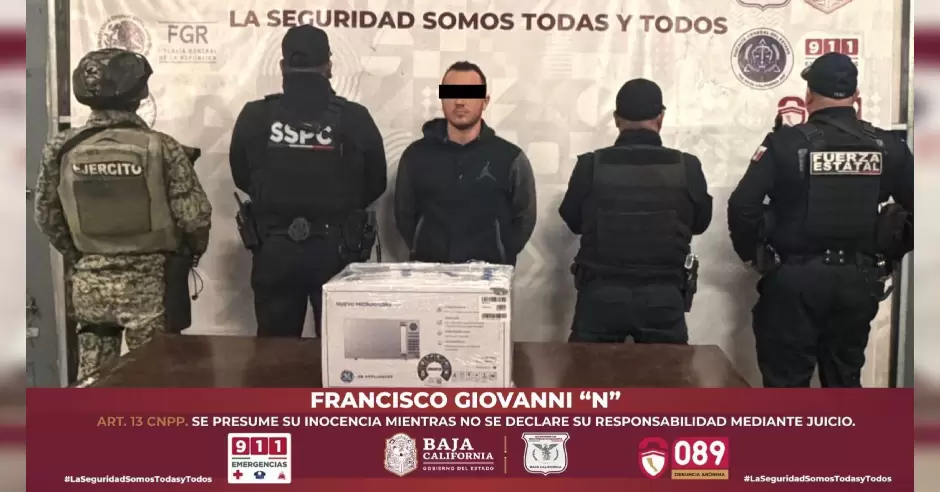El tripulante se identificó como Francisco Giovanni "N", de 33 años y originario de Tijuana. Durante la interacción el conductor se dirigió con palabras altisonantes contra los oficiales, motivo por el que se procedió a llevar a cabo una inspección. Fue sobre el asiento del conductor que se encontró una caja con la leyenda "Nuevo Microondas", con paquetes al interior, confirmando la presencia de la droga, con un peso aproximado de 4.340 kilogramos