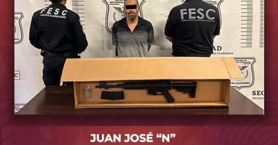 TIJUANA- Derivado de un despliegue operativo que se realizó de manera conjunta en el municipio de Tijuana, agentes de la Fuerza Estatal de Seguridad Ciudadana (FESC) y elementos de la Secretaría de la Defensa Nacional (DEFENSA), le aseguraron un arma de fuego de alto calibre a un hombre identificado como Juan José "N"; durante la intervención, el sujeto en mención intentó evadir a las autoridades y estuvo a punto de atropellar con su vehículo a varias personas que se encontraban en la vía pública.