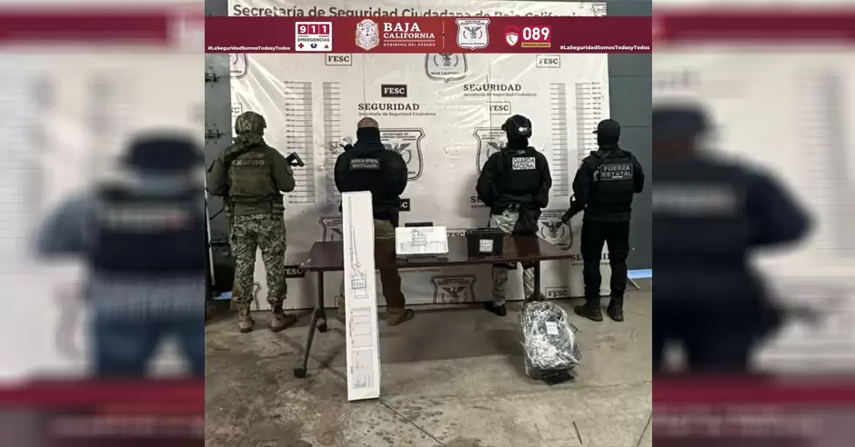 Elementos de la Secretaría de la Defensa Nacional (DEFENSA) y Guardia Nacional (GN) brindaron apoyo para la preservación del sitio. El armamento, los cartuchos, el equipo táctico y el vehículo fueron puestos a disposición de la Fiscalía General de la República (FGR), con sede en Tijuana, con el fin de dar seguimiento correspondiente.