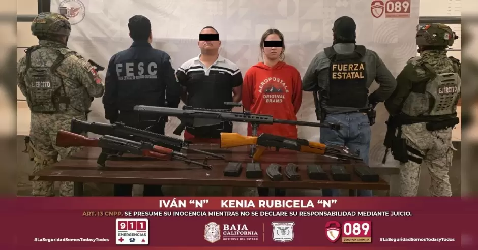 Ante la posesión del armamento exclusivo, se procedió con la detención de Iván "N" de 31 años, originario de Guadalajara, Jalisco y Kenia Rubicela "N" de 20 años y originaria de San Bernardino, California, Estados Unidos, quienes fueron puestos a disposición de la autoridad federal para la integración de la carpeta de investigación y la determinación de su situación jurídica.