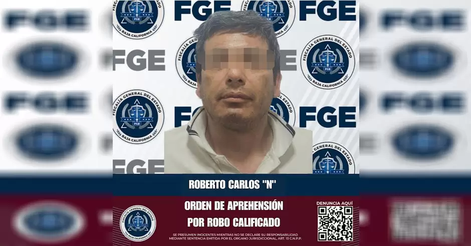 TIJUANA.- En cumplimiento de una orden de aprehensión en contra de Roberto Carlos "N", la Agencia Estatal de Investigación, adscrita a la Fiscalía Regional de Tijuana, llevó a cabo su detención y presentación ante la autoridad judicial, por el delito de robo calificado a comercio abierto al público.