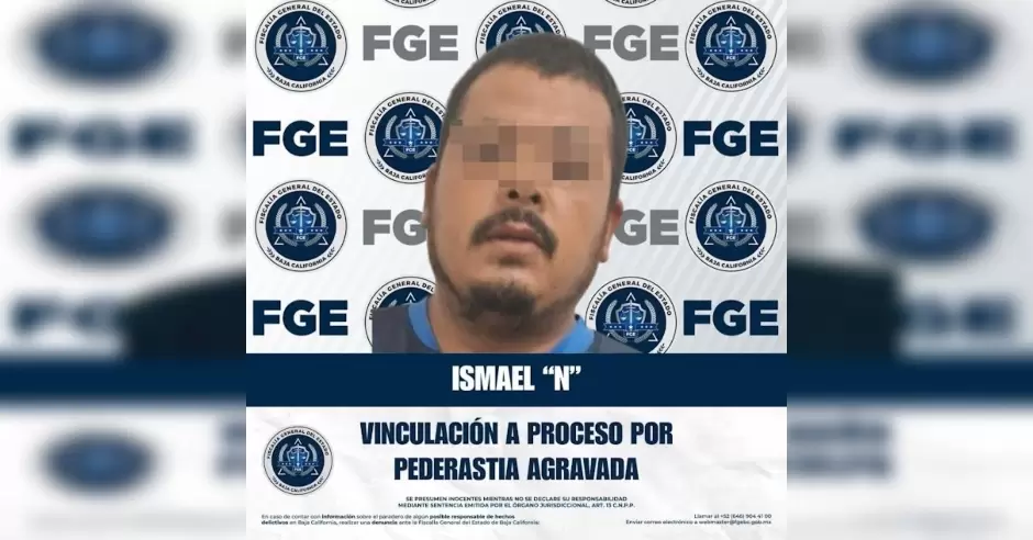 TIJUANA.- La Fiscalía General del Estado bajo las directrices de la titular, Dra. Ma. Elena Andrade Ramírez, de presentar ante la justicia a todo aquel que cometa algún delito contra las mujeres en Baja California, se logró la vinculación a proceso en contra de Ismael "N" por el delito de pederastia agravada, gracias a las labores de la Unidad de Investigación Especializada en Delitos Sexuales, Adscrita a la Fiscalía Especializada en Delitos contra Mujeres Por Razón de Género.