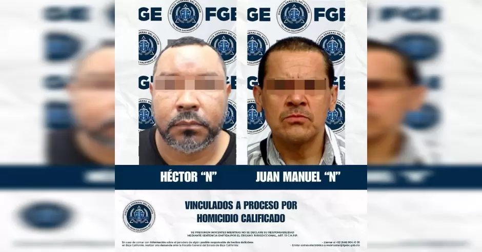 TIJUANA.- Bajo la directriz de la Fiscal General del Estado, Dra. Ma. Elena Andrade Ramírez, la Fiscalía Especializada en Delitos Contra la Vida obtuvo la vinculación a proceso y la medida cautelar de prisión preventiva en contra de Héctor "N" y Juan Manuel "N", por su presunta responsabilidad en el delito de homicidio calificado, derivado de un ataque armado en contra de un abogado.