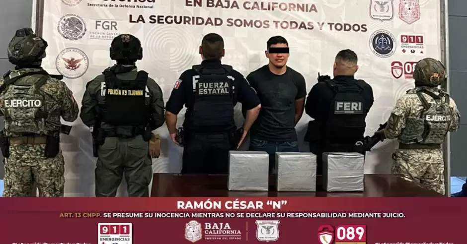 Por tal razón, Ramón César "N", de 25 años y originario de Chihuahua, fue detenido en el lugar; posteriormente, con apoyo de la Secretaría de la Defensa Nacional (DEFENSA) y de la Policía Municipal de Tijuana, fue puesto a disposición de la Fiscalía General de la República (FGR), autoridad encargada de investigar la procedencia y el destino del narcótico incautado.