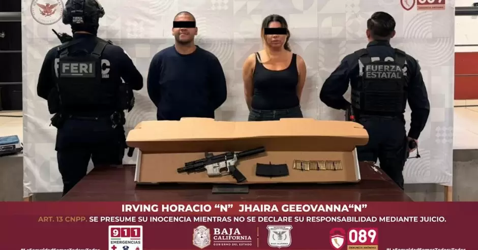 TIJUANA.- Durante un patrullaje preventivo que se realizó en las inmediaciones de la colonia Sánchez Taboada en la ciudad de Tijuana, agentes de la Fuerza Estatal de Seguridad Ciudadana (FESC) detuvieron a una mujer y un hombre tras ser sorprendidos en posesión de un arma de fuego larga tipo AR-15, la cual se hallaba abastecida con varios cartuchos útiles.