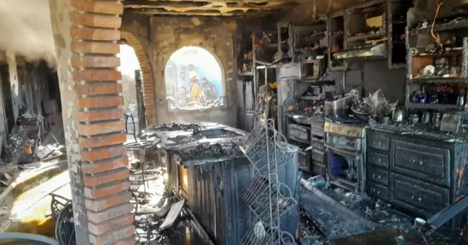 PLAYAS DE ROSARITO.- Bomberos atienden el incendio de una vivienda en el Fraccionamiento Misión Viejo, en la mañana del lunes 27 de marzo.