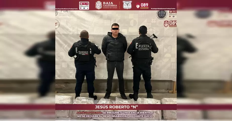 Debido al hallazgo, la autoridad estatal procedió a la colocación de dispositivos reductores de movilidad a Jesús Roberto "N", informándole sus derechos constitucionales; posteriormente, el detenido y la sustancia incautada fueron puestos a disposición de la Fiscalía General de la República (FGR) con sede en la ciudad de Tijuana. La Seguridad Somos Todas y Todos.