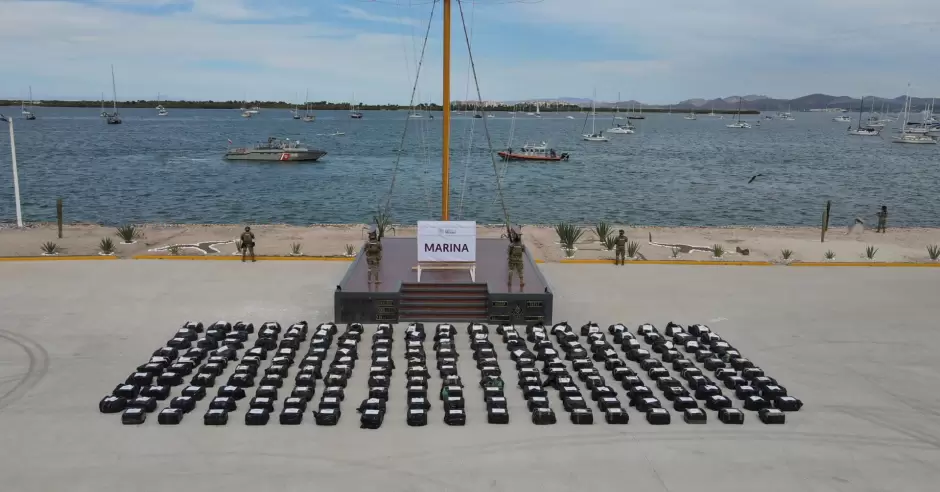 CIUDAD DE MÉXICO.- En el marco de las acciones permanentes para mantener el Estado de derecho, la Secretaría de Marina a través de la Armada de México en funciones de Guardia Costera, informa que, durante operaciones de vigilancia y seguridad marítima, se logró el aseguramiento de aproximadamente 188 bultos que representan varias toneladas de presunta cocaína, en espera de que las autoridades competentes determinen el peso ministerial.