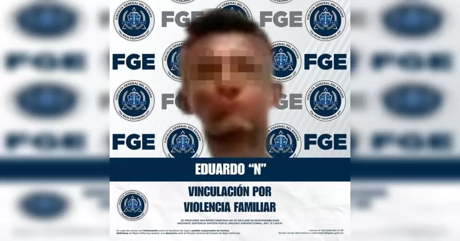 TIJUANA.- La Fiscalía Regional de Tijuana, derivado de los datos de prueba presentados por el Ministerio Público, obtuvo la vinculación a proceso de Eduardo "N", imputado por el delito de violencia familiar.