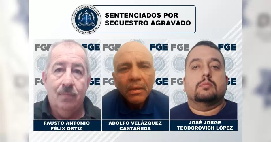 MEXICALI.- La Fiscalía General del Estado continúa con buenos resultados en el combate a la delincuencia, al lograr fallo de condena en contra de tres hombres relacionados en el secuestro de un residente del fraccionamiento Villafontana, registrado en noviembre del 2018.