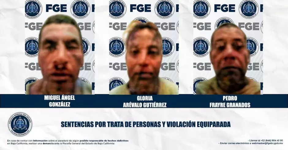 TIJUANA.- La Fiscalía Regional de Tijuana informó que, derivado del trabajo realizado por la Coordinación de Averiguaciones Previas y Control de Proceso, se logró que fueran sentenciadas tres personas acusadas de los delitos de trata de personas en la modalidad de explotación sexual agravada y violación equiparada.