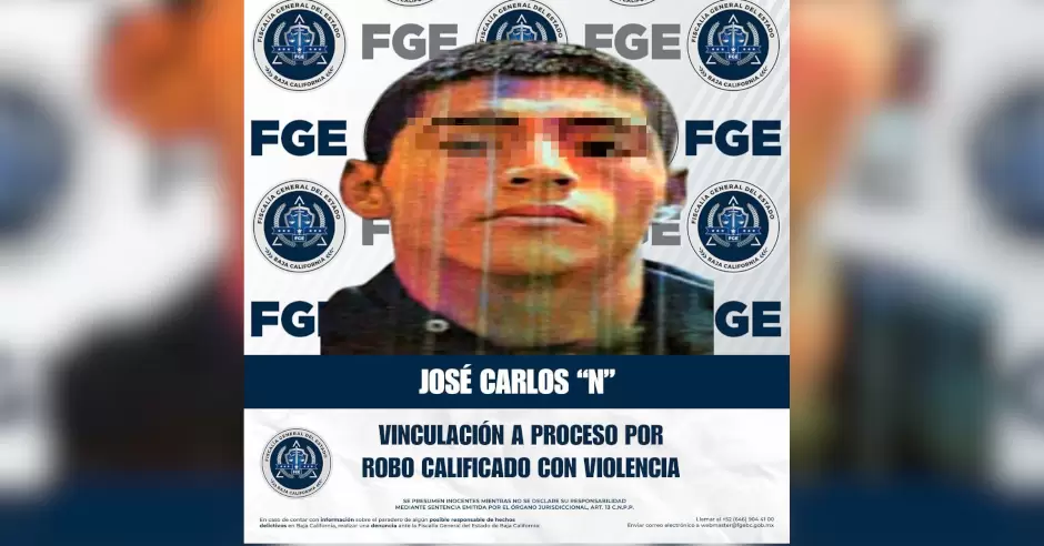TIJUANA.- La Fiscalía General del Estado, a través de la Fiscalía Regional de Tijuana, logró que un juez de control dictara auto de vinculación a proceso y la medida cautelar de prisión preventiva en contra de José Carlos "N", presunto responsable del delito de robo calificado a comercio abierto al público, ejecutado con violencia.