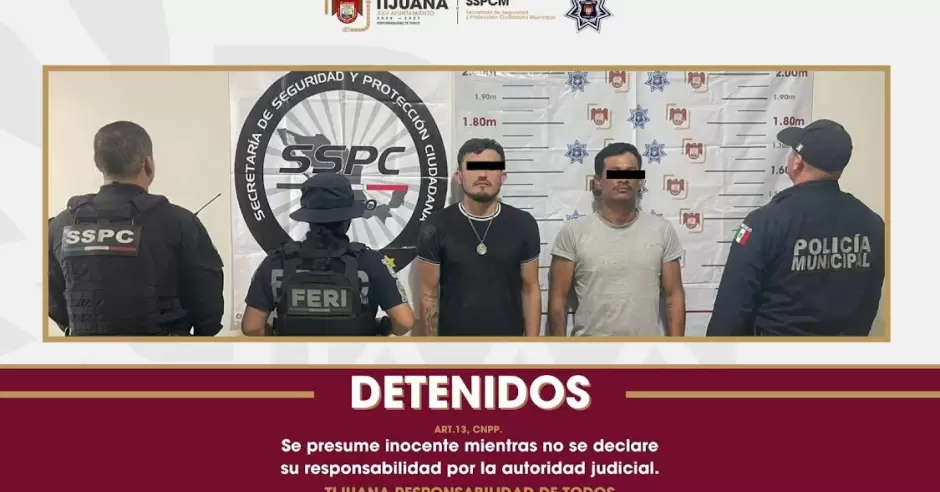TIJUANA.- La Secretaría de Seguridad y Protección Ciudadana Municipal (SSPCM) con el apoyo de la Secretaría de Seguridad y Protección Ciudadana Federal y la Fuerza Estatal de Seguridad Ciudadana, logró la detención en poco tiempo de dos personas identificadas como presuntos responsables de un homicidio ocurrido la tarde de este sábado en la colonia Las Cumbres.